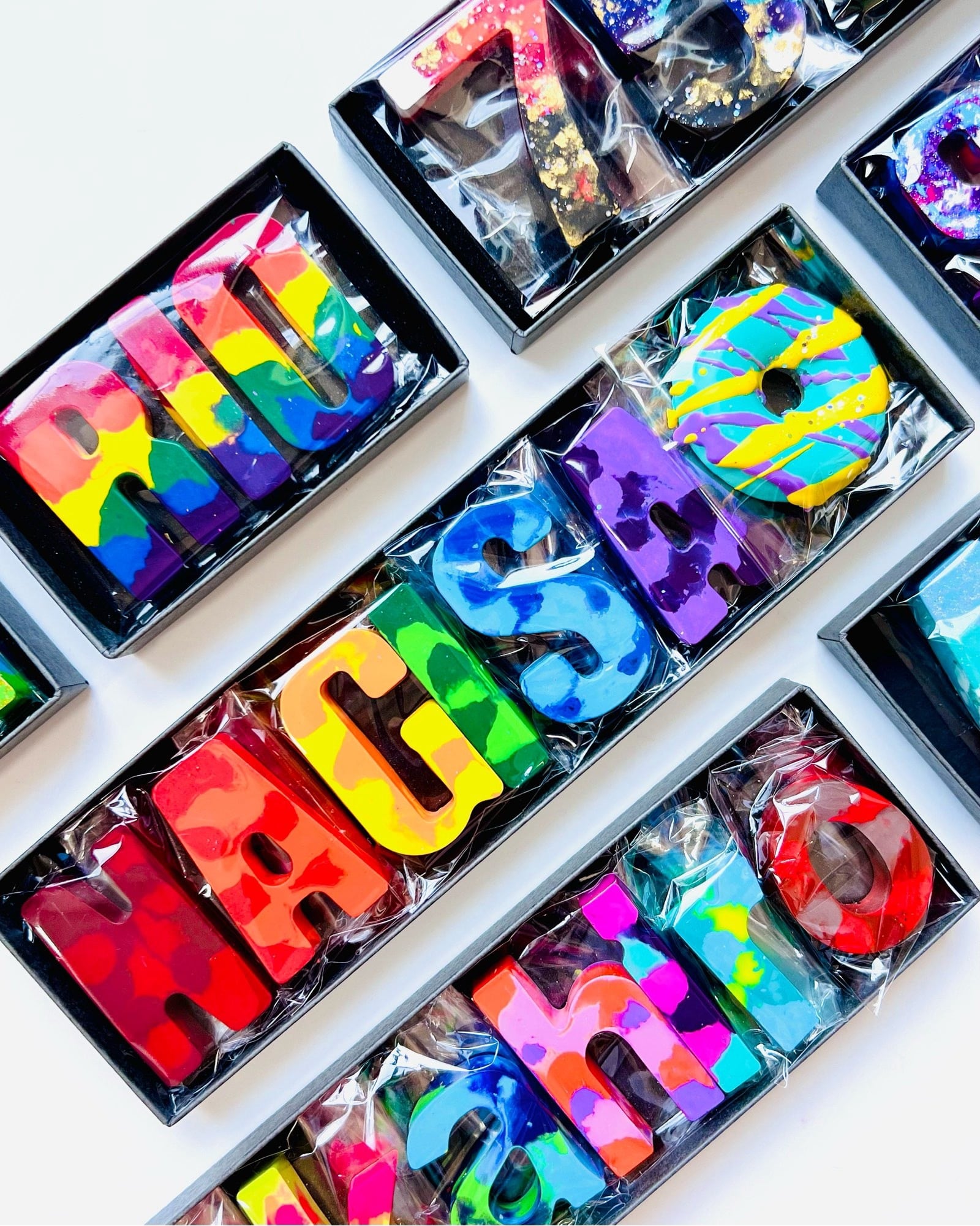 「ちょっとしたお返しに渡したい!」 「どんな素材なのか触ってみたい!」 「描きごこちを試してみたい!」 そんな声にお応えする、 “少し小さめ“のクレヨンが詰まったセットです♪ 通常のクレヨンと異なるのは「大きさ」のみ。 素材、描き心地、かわいさは全て同じです。 。 __________________________________________ ⬛︎お色味やイメージのご希望があれば備考欄にご入力ください。 「イメージと違った」などのお客様都合での返品、交換は致しかねます。 届いて開封したときから「かわいい!」と喜んでいただけるよう丁寧にお作りいたします。 ⬛︎4文字までの注文では、5文字になるようにこちらでランダムでモチーフクレヨンを追加致します。 例 AI→〇〇AI〇 SHU→〇SHU〇 HANA→HANA〇 ⚠︎5文字以上は、文字が1つ増える事に¥200ずつ追加となります。 6文字→¥2,300 7文字→¥2,500… その他モチーフクレヨンなどオプションを追加しますと、別途料金が追加となります。 ⬛︎通常「ラメあり」でお作りします。 ラメなしも可能ですが、ラメありとは仕上がりが若干異なります。 ラメなしでご希望の方は、備考欄にご入力ください。ラメの有無で料金は変わりません。 ⬛︎ お届けについては、ご入金確認後、7〜10日で発送となります。