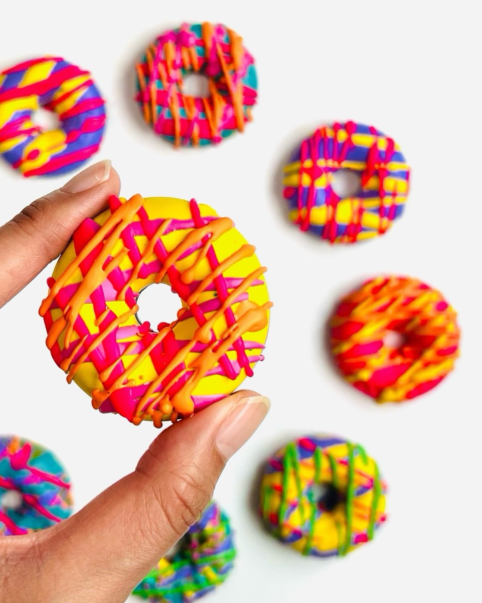 ドーナツクレヨン 1個 ひとつのクレヨンから 10色以上の色が出る不思議なクレヨン! 見た目も可愛い!遊んでも楽しい! 誰でも素敵な絵が描ける!魔法のドーナツ。 プチギフトでお悩みの方におすすめです。 複数まとめてのご注文大歓迎です! __________________________________________ ⬛︎「イメージと違った」などのお客様都合での返品、交換は致しかねます。 届いて開封したときから「かわいい!」と喜んでいただけるよう丁寧にお作りいたします。 ⬛︎ お届けについては、ご入金確認後、7〜10日で発送となります。 ⬛︎ラッピング無は透明リフィル、ラッピング有りはそのままギフトにも使える箱に1つずつ入れてお送りいたします。仕入れ状況により、ラッピング資材が変更となる場合もありますので、予めご了承ください。