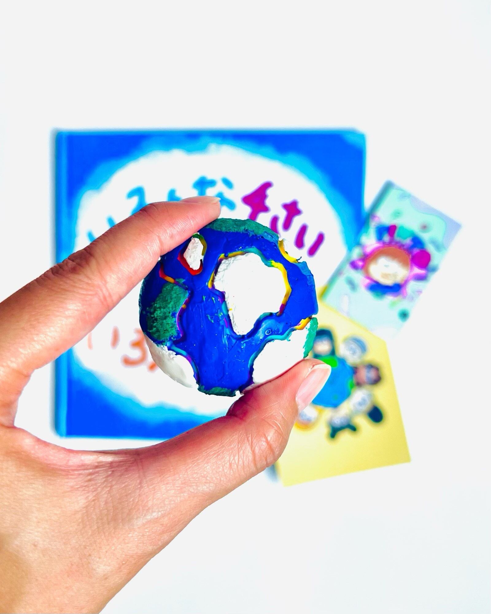 絵本の表紙にも描かれている「地球」をモチーフにした、完全オリジナルクレヨン。